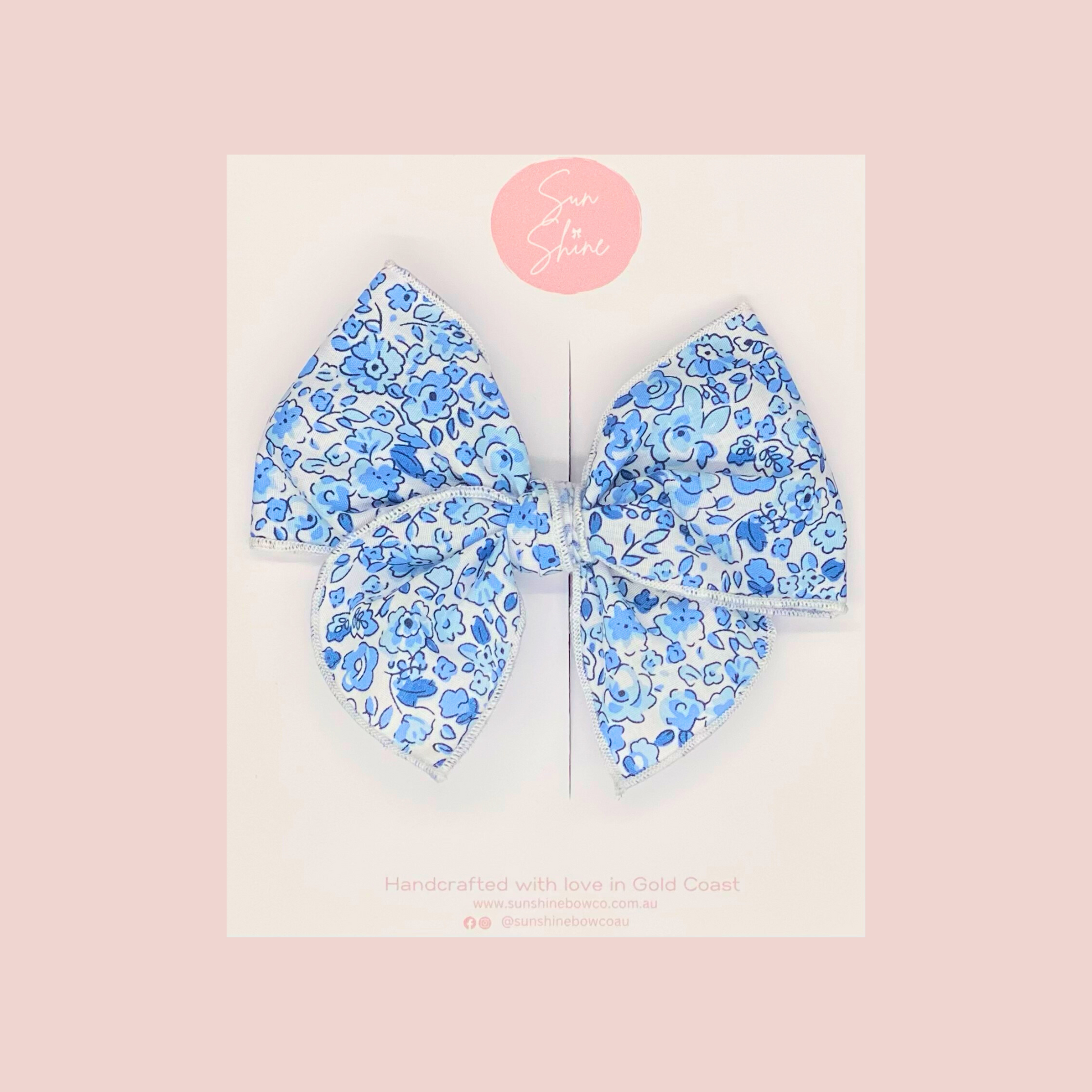 Introducing our enchanting Fable Bow - Blue Blossom, a delicate and captivating accessory that adds a touch of elegance to any outfit. Crafted with meticulous attention to detail, this bow features intricate hand-stitched embroidery, creating a beautiful harmony between craftsmanship and style. The serene blue hues of the blossom design evoke a sense of calm and grace, making it an ideal choice for both everyday wear and special occasions. With its timeless appeal, the Blue Blossom Fable Bow is a must-have addition to your collection. Elevate your look with the magic of artisanal craftsmanship and timeless beauty. Available now in our exclusive Fable collection.