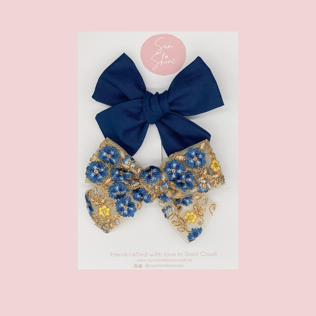 Beautiful Melbourne Embellished Bow and deep ocean classic.