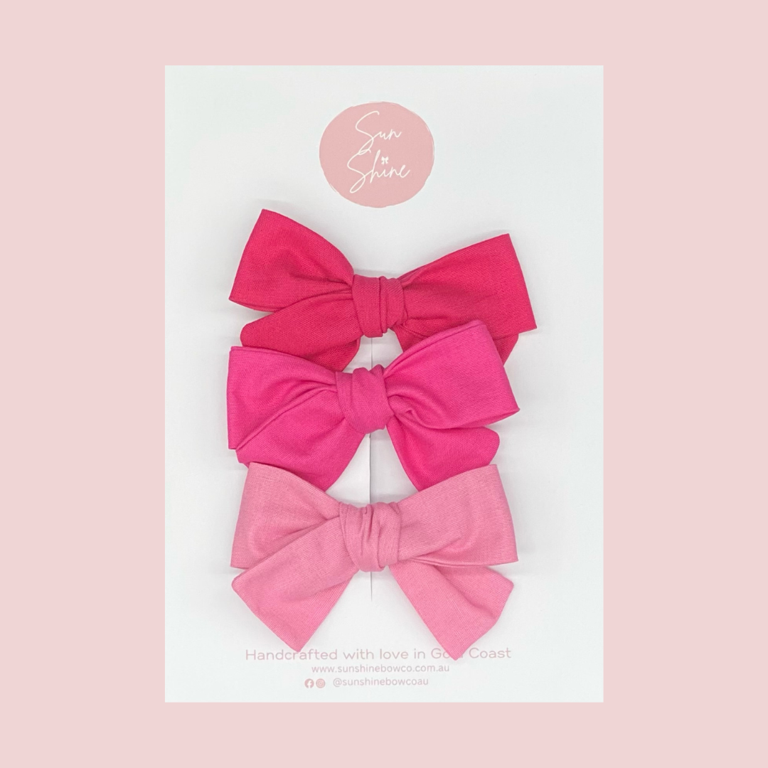 Set of 3 deep pink mini classic hair bows.