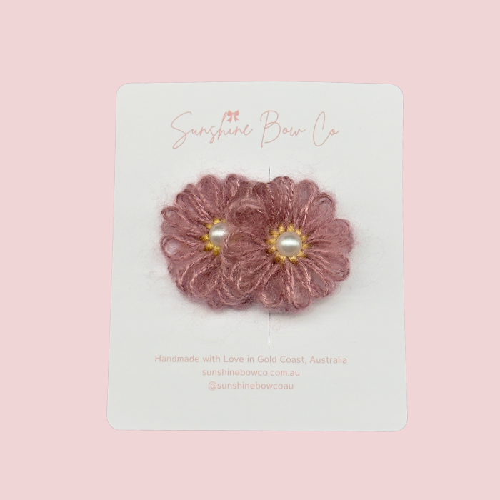 Add a touch of elegance to your hairstyle with the Pearl Bloom Lavender hair clip. Measuring approximately 5 cm, this exquisite clip is crafted from soft wool, forming a delicate flower with a shimmering pearl at the center. Perfect for adding a soft, sophisticated accent to any look.