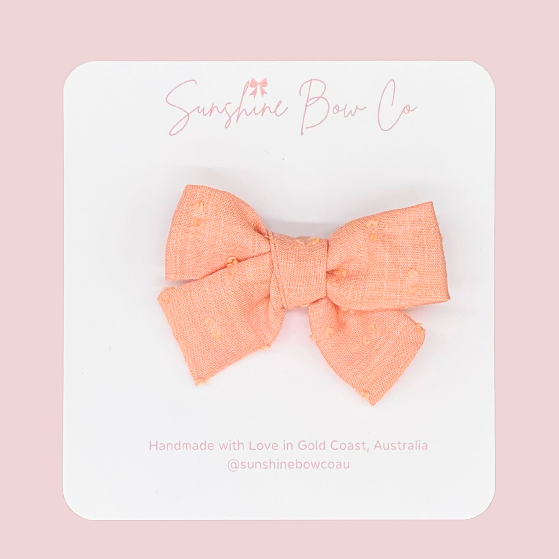 Infuse a touch of handmade elegance into your little one's ensemble with our stunning Dusky Pink Swiss Dot Bow. Each bow is lovingly handcrafted, showcasing a beautiful dusky pink hue complemented by intricate Swiss dots. With a size of approximately 8.5 cm, it's the ideal accessory for adding a subtle yet sophisticated charm. Plus, it offers versatility with options for both a gentle nylon headband and convenient clips for toddlers and older children. Elevate any outfit with this timeless accessory, meticulously crafted with love and care.